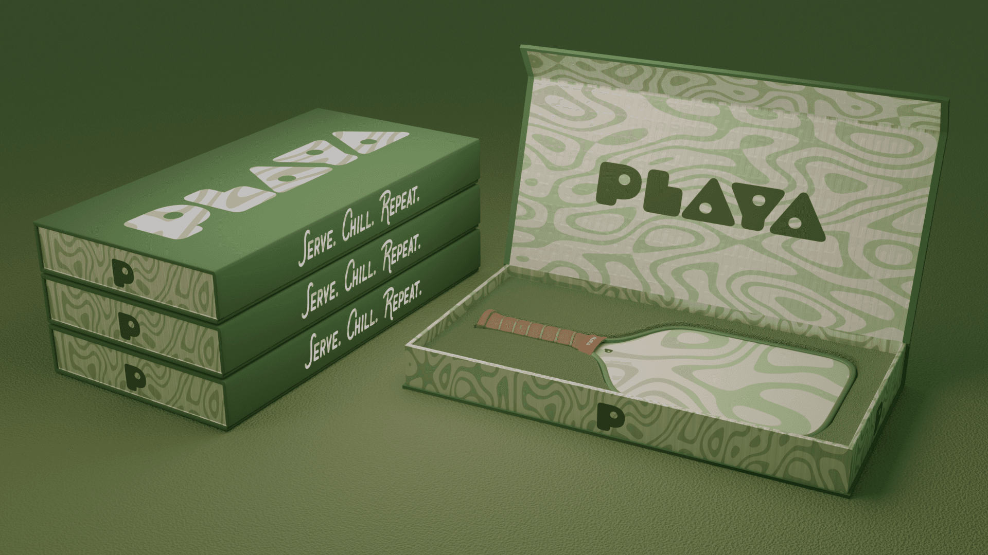 A personal concept project for a fictional pickleball brand called "Playa." The primary focus was designing the paddle and developing a cohesive set of colorways and graphics - each unique, yet part of a unified visual family. All models and visuals were created and rendered in Blender.